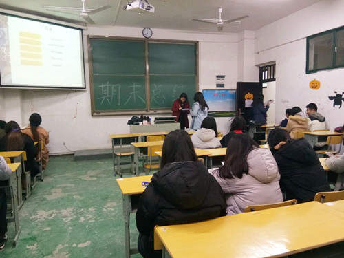 (记者 梁芳)12月20日晚七点半,管理系2016级应用日语班在二教109教室召开了“期末总结”主题班会。此次班会由班主任朱玲坤老师主持,日语班全体同学出席了此次班会。